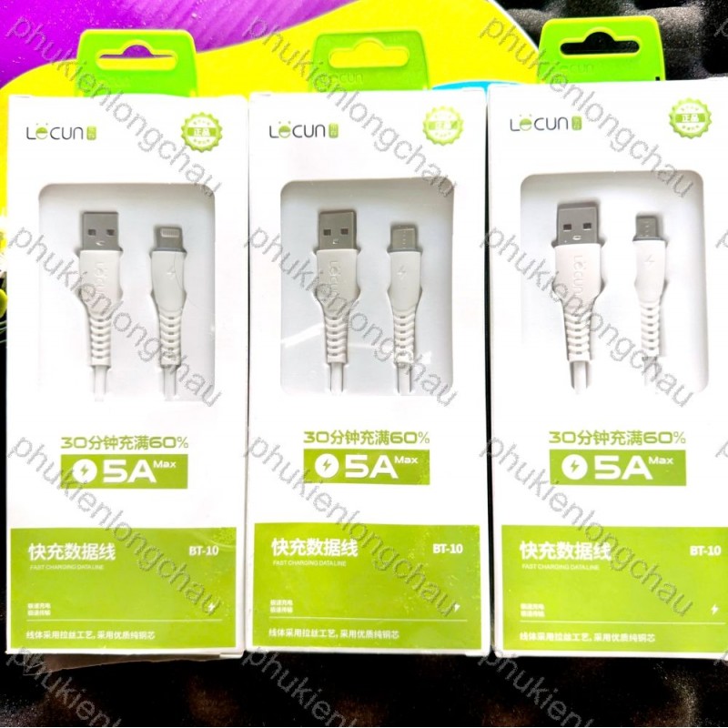 Dây Cáp 5A Lecun BT-10 Siêu Bền Sợi To Trơn Hổ Trợ Sạc Nhanh Quick Charge, SUPER VOOC, IPHONE, MI TURBO,... (BH 1T)