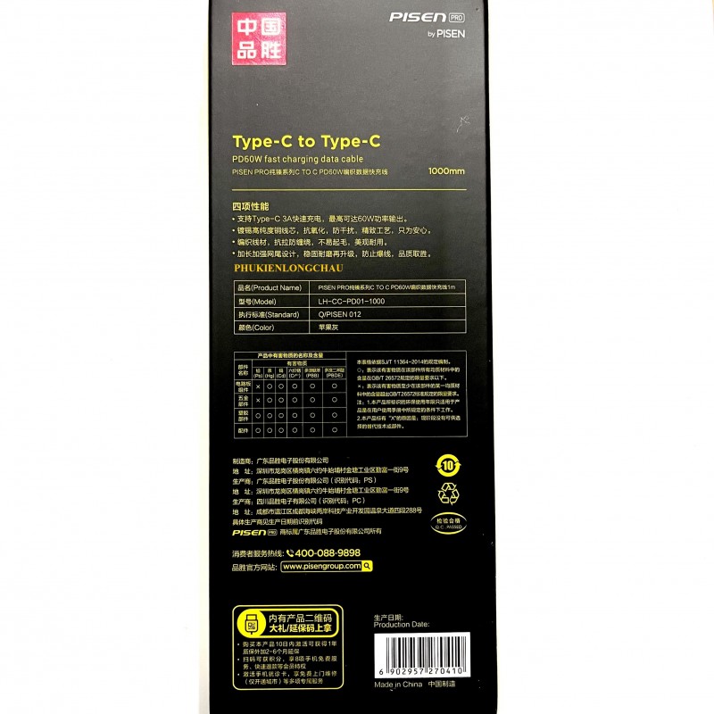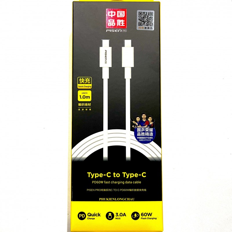 Dây Cáp PD C-C 3A / 60W Chính Hãng Pisen TC02 (BH 3T)