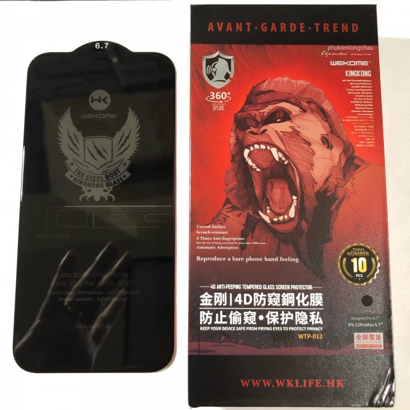 Kính Cường lực 4D KingKong WK Anti Peeping với tính năng chống nhìn trộm màn hình cho iPhone. Vừa được hãng WK DESIGN cho ra mắt cách đây không lâu. Khi đã dán miếng cường lực này, những người khác không thể quan sát màn hình của bạn trong góc nghiêng 30 độ. Tức là bạn vẫn có một tấm kính bảo vệ full màn hình bên cạnh đó sản phẩm được bo gốc cạnh 4D. Điều này cho ta một trải nghiệm vuốt kính rất thích.