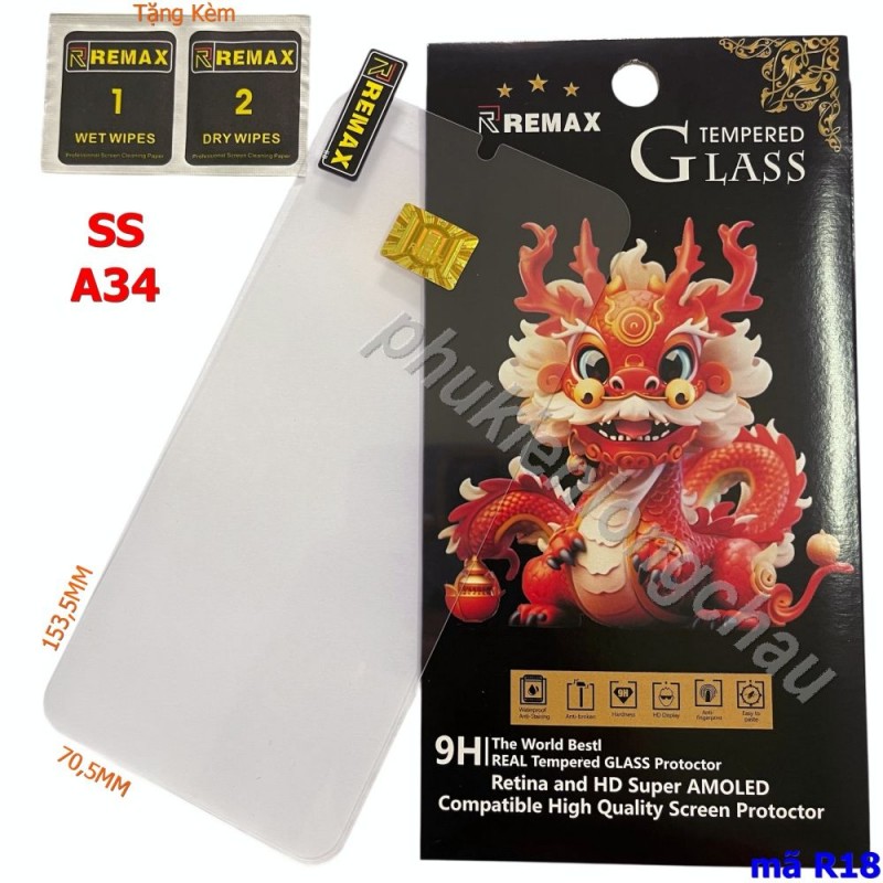 Miếng Dán Cường Lực Samsung A34 5G Trong Suốt Mỏng Chính Hãng Remax (R18*)