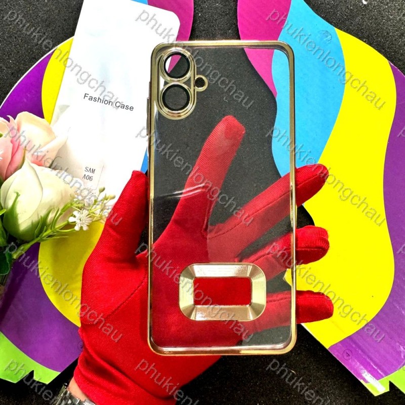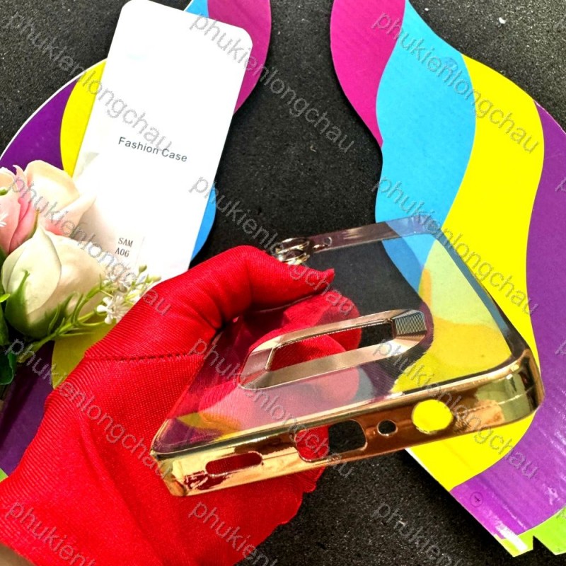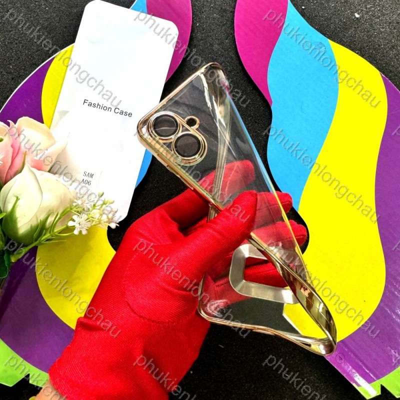 Ốp Lưng Samsung A06 Dẻo TPU Mềm Mại Viền Vuông Vàng Khuyết Logo Có Kính Bảo Vệ Camera