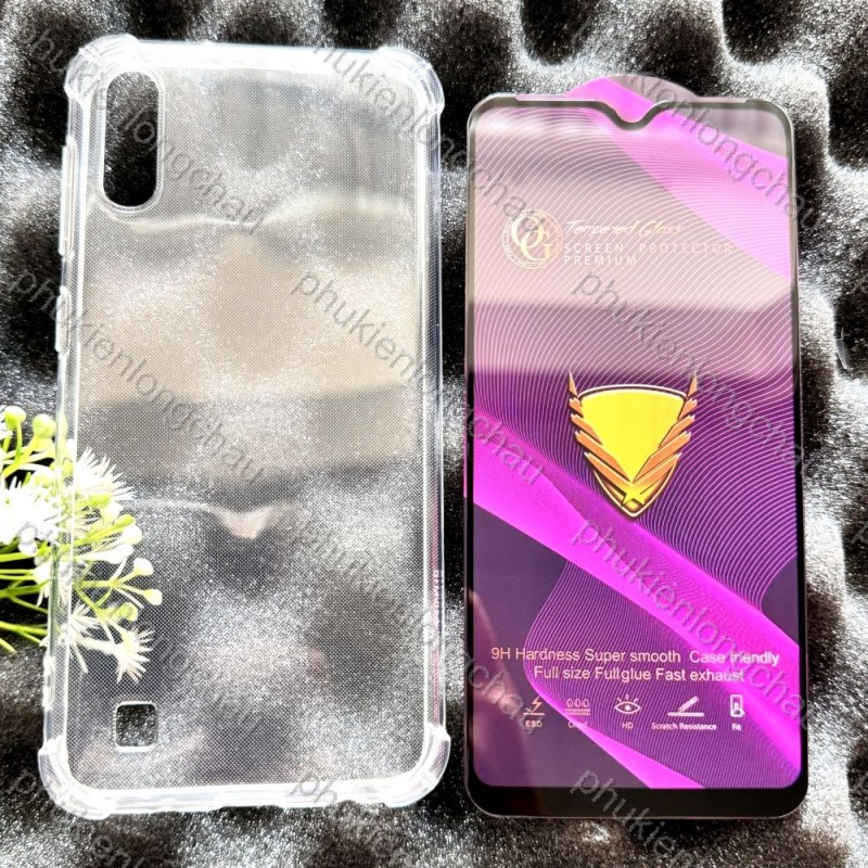 (COMBO F34) SAMSUNG A10 - Ốp Lưng TPU Trong Chống Sốc và Kính Cường Lực Full Màn Hình OG Chính Hãng