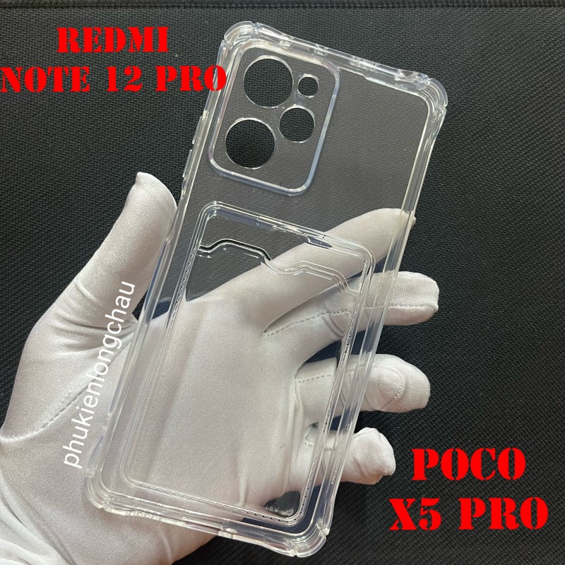 Ốp Lưng Xiaomi Redmi Note 12 Pro 5G / Poco X5 Pro 5G Trong Chống Sốc Gù Bảo Vệ Camera Kèm Ngăn Đựng Thẻ