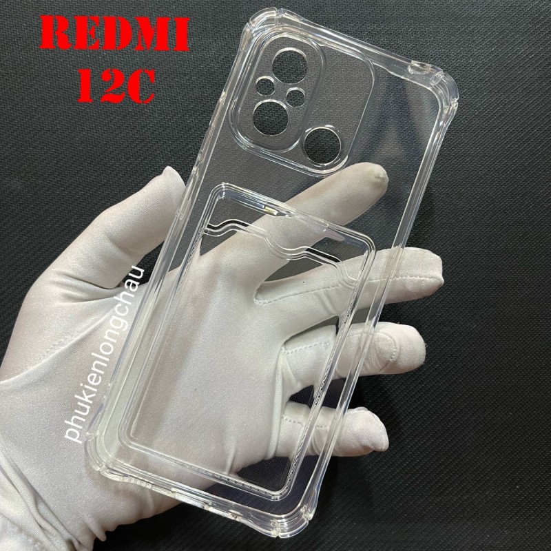 Ốp Lưng Xiaomi Redmi 12C Trong Chống Sốc Gù Bảo Vệ Camera Kèm Ngăn Đựng Thẻ