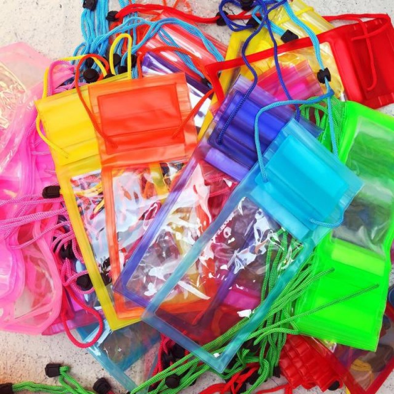 + Đi bơi, đi biển, đi suối,...: bỏ điện thoại, tiền và vật dụng linh tinh vào túi vào đeo vào cổ khi tắm, có thể chụp hình hoặc nhắn tin trực tiếp trên túi (vì túi có hổ trợ cảm ứng qua lớp túi).