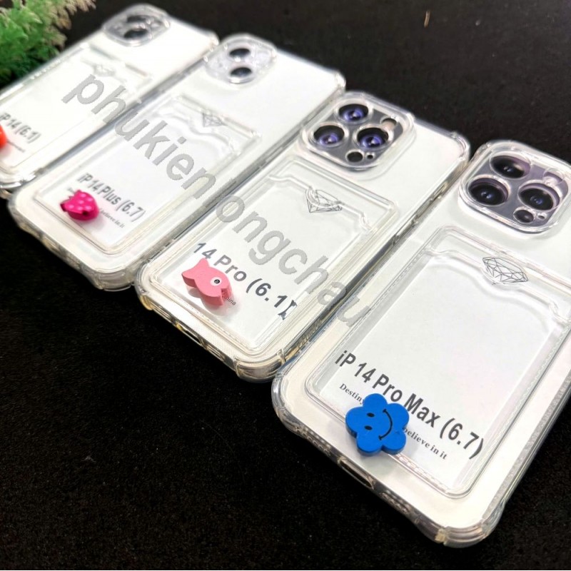 Ốp Lưng iPhone 14 Pro Max, 14 Pro, 14 Plus, 14 Trong Chống Sốc Gù Bảo Vệ Camera Kèm Ngăn Đựng Thẻ Card, Hình Ảnh
