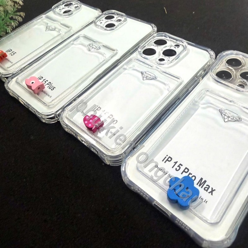 Ốp Lưng iPhone 15 Pro Max, 15 Pro, 15 Plus, 15 Trong Chống Sốc Gù Bảo Vệ Camera Kèm Ngăn Đựng Thẻ Card, Hình Ảnh