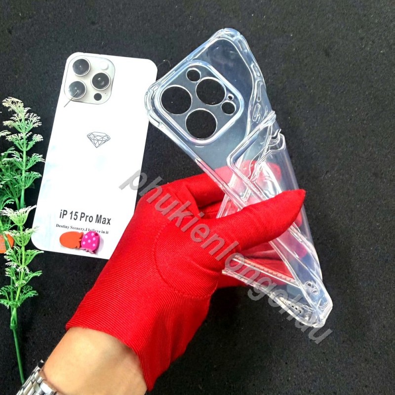 Ốp Lưng iPhone 15 Pro Max Trong Chống Sốc Gù Bảo Vệ Camera Kèm Ngăn Đựng Thẻ